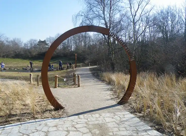 Elk themagebied heeft een entree gekregen in de vorm van een ronding van COR-TEN-staal met een eigen kenmerk, subtiel erin verwerkt. De vorm refereert naar de ronding in de betonnen buis die de entree vormt van het bezoekerscentrum en het beeld is voor PWN als waterleidingbedrijf.