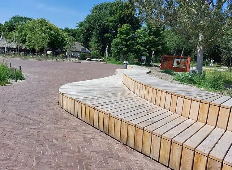 Ronde vormen van de vlonder waren een uitdaging om te realiseren, maar het resultaat was een prachtige inpassing in het gebied. Foto: Castricum, Voor liefhebbers