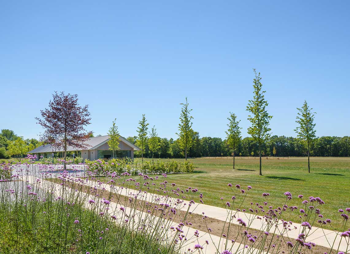 Bij de inrichting van het landgoed is nauw samengewerkt met Reitsema & partners architecten. Schorn: “Door in een vroegtijdig stadium al samen op te trekken, krijg je samenhang tussen de gebouwen en de omgeving. We zijn letterlijk het veld ingegaan met de architect en de initiatiefnemer, op zoek naar de mooiste plek voor het gebouw.”
