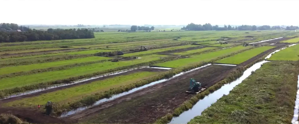 Een voorbeeld is De Witten, waar levend hoogveen dreigde te verdrogen. Om dit kwetsbare gebied te beschermen, legden we samen met Staatsbosbeheer een waterkerende kade aan. Een grootschalig project dat tot op de centimeter nauwkeurig werd voorbereid om een van de laatste hoogveenrestanten van Nederland te behouden.